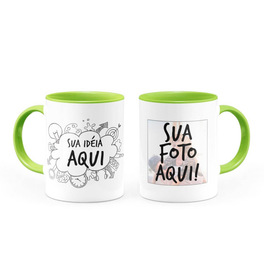 Ter uma caneca personalizada alça e interior verde claro criada do seu jeito é sempre um diferencial, pois é sempre gostoso nos presentear ou presentear alguém querido, além de poder apreciar em uma caneca, seja um café, chá, chocolate quente e outras bebidas.